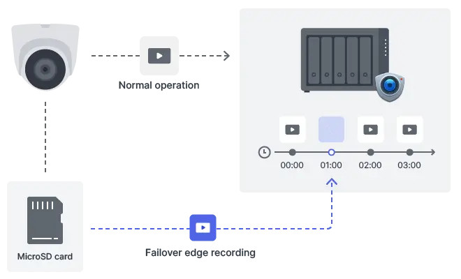 Bằng cách lưu trữ video trong thẻ SD tích hợp của máy ảnh, tính năng ghi cạnh cho phép máy ảnh tiếp tục ghi ngay cả khi kết nối mạng tạm thời bị mất hoặc khi máy chủ ngừng hoạt động.