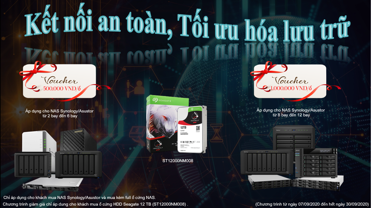 Chương trình "Kết nối an toàn, Tối ưu hóa dữ liệu" tháng 9 ( NAS Synology/Asustor + ổ cứng Seagate 12TB)