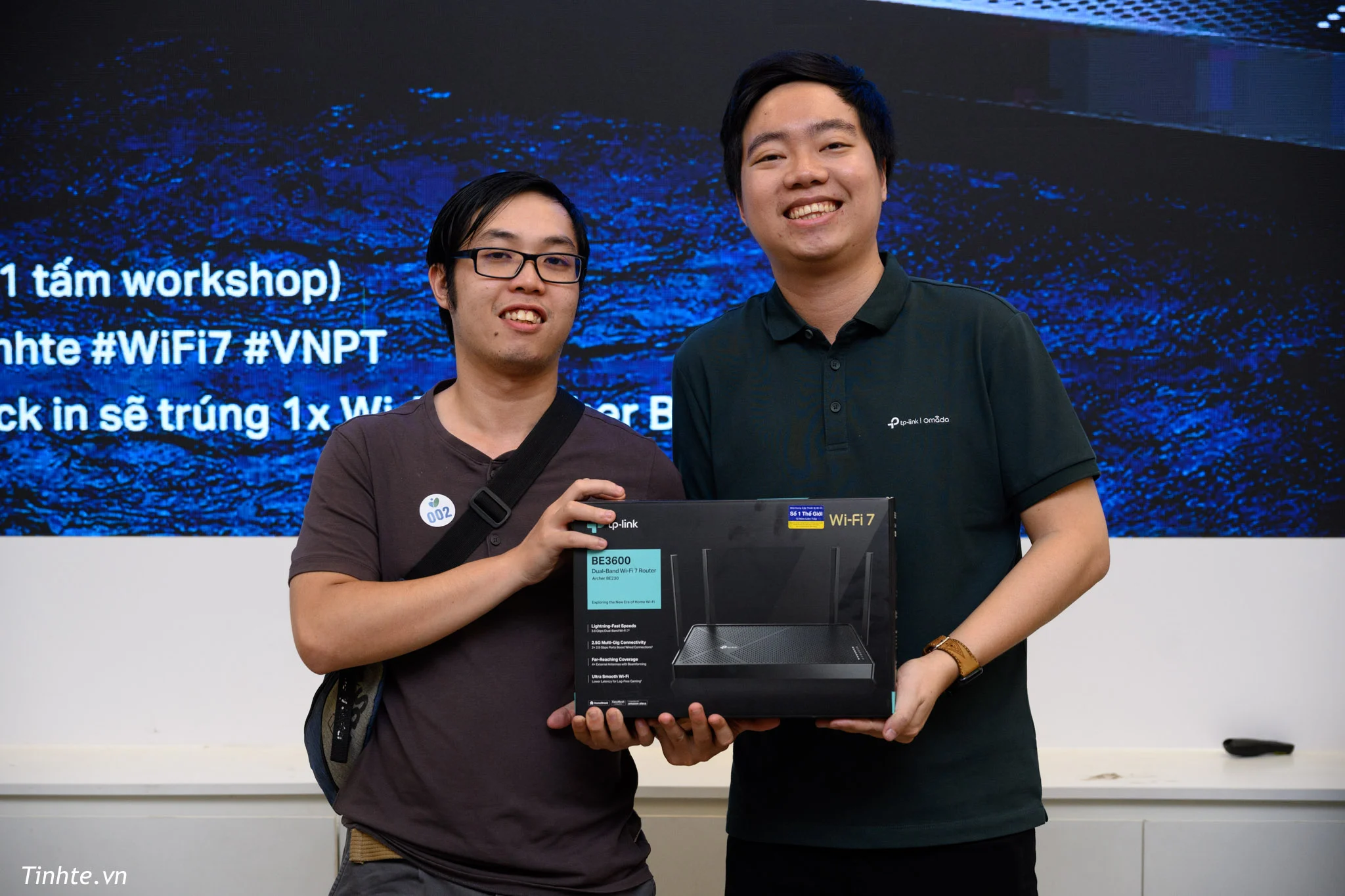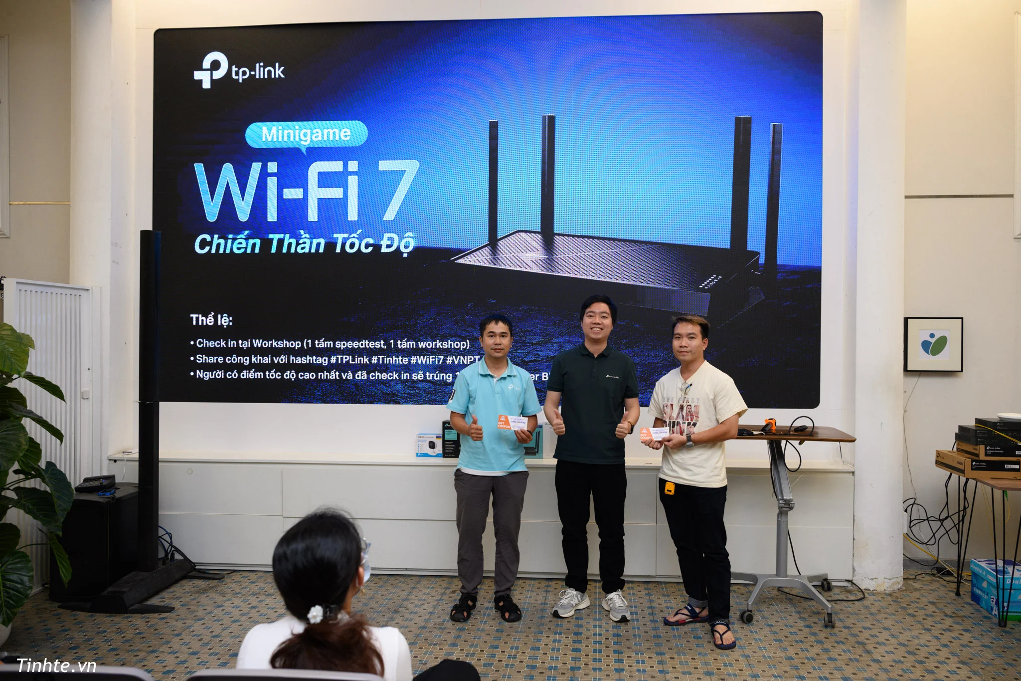 Phần hấp dẫn của workshop là tìm ra người sở hữu máy có khả năng kết nối Wi-Fi nhanh nhất tại sự kiện. BTC chuẩn bị 1 đường truyền mạng VNPT tốc độ tối đa 2.5GbE theo đúng thông số của dòng thiết bị Access Point Wi-Fi 7 Omada EAP723.