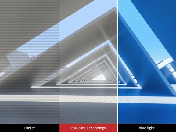 Công nghệ chống nhấp nháy và bộ lọc ánh sáng xanh giúp bảo vệ mắt khỏi hội chứng rối loạn thị giác CVS khi ngồi lâu trên màn hình máy tính.