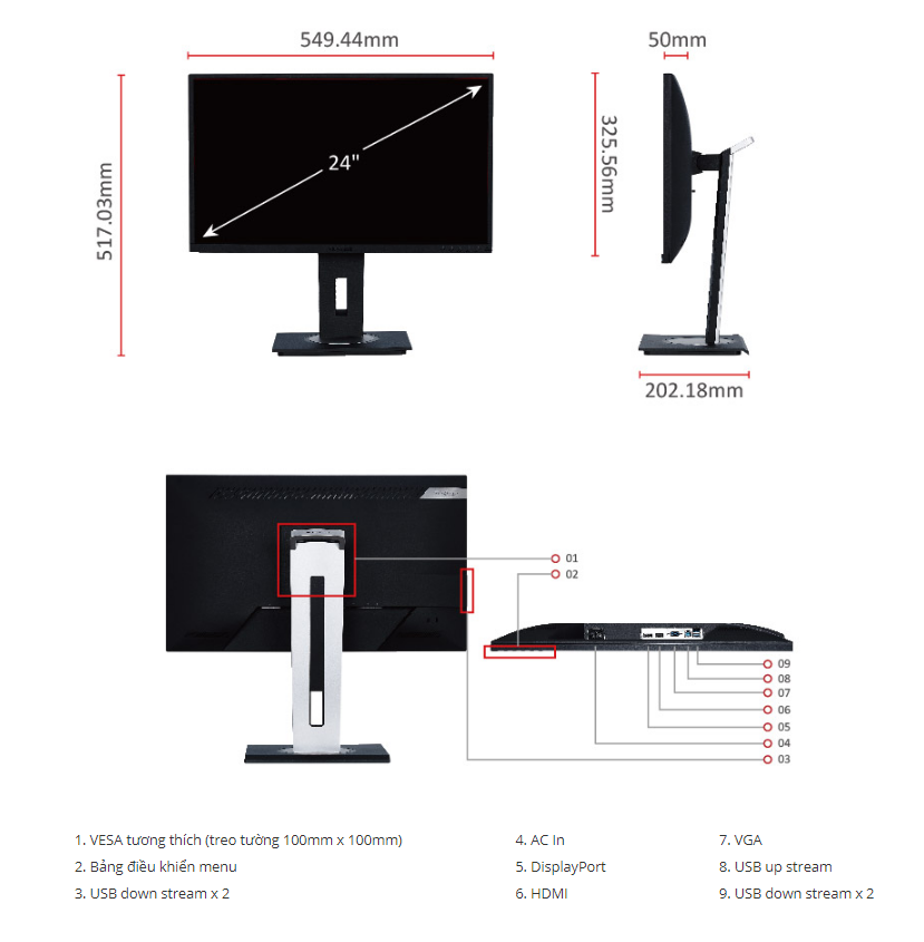 Các đường nét nổi bật và một dấu footprint nhỏ là những gì làm cho Màn hình máy tính LCD ViewSonic VG2448 24" Monitor trở nên đặc biệt và thiết kế tối giản hiện đại của màn hình phù hợp hoàn hảo với bất kỳ không gian làm việc nào. Thiết kế thông minh tiện lợi