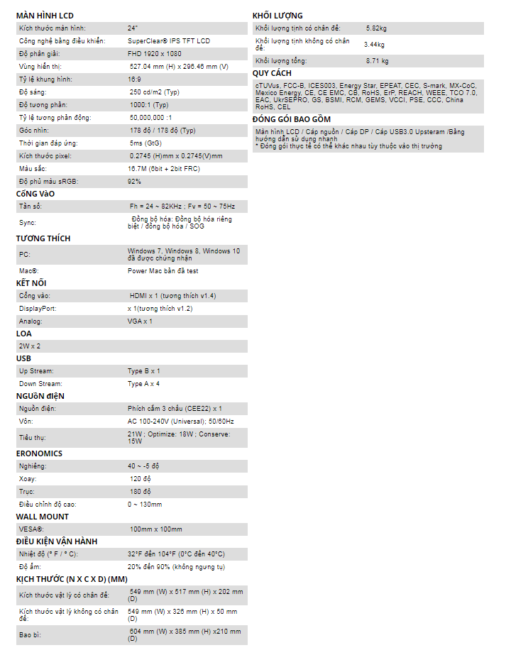 Màn hình máy tính LCD ViewSonic VG2448 24" Monitor là màn hình 1080p 24 "(23,8’ có thể xem) với các tính năng nâng cao năng suất bao gồm công nghệ IPS và thiết kế tiện dụng cao cấp cho văn phòng hiện đại. Sử dụng công nghệ SuperClear® IPS và độ phân giải 1080p, Màn hình máy tính LCD ViewSonic VG2448 24" Monitor mang lại hình ảnh sắc nét, rõ ràng từ mọi góc nhìn. Thiết kế thông minh tiện lợi tiên tiến cung cấp phạm vi rộng nhất cho các điều chỉnh tùy chỉnh hiện có để mang đến sự thoải mái tối đa, bao gồm trục xoay kép, xoay, điều chỉnh độ cao và độ nghiêng 40 ° ấn tượng, cho phép bạn sử dụng màn hình trong khi đứng và thảo luận nhóm chiến lược xung quanh màn hình. Màn hình máy tính LCD ViewSonic VG2448 24" Monitor sử dụng bao bì thân thiện với môi trường và cung cấp khả năng cài đặt nhanh chóng và dễ dàng thông qua giá đỡ Quick Release. Chân đế có thể gắn kết với máy khách qua ứng dụng đám mây cùng với các tính năng thiết kế quản lý cáp, giúp Màn hình máy tính LCD ViewSonic VG2448 24" Monitor hoàn hảo cho việc triển khai trong các môi trường dựa trên đám mây. Các tùy chọn kết nối linh hoạt bao gồm đầu vào HDMI, DisplayPort, VGA và USB 3.0.