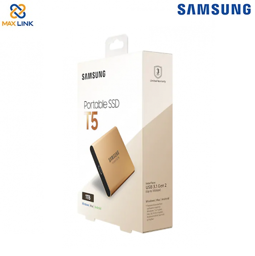 Ổ cứng SAMSUNG SSD T5 PORTABLE 1TB MU-PA1T0G/WW Gold là sản phẩm thuộc dòng SSD Portable của Samsung nâng cấp tốc độ truyền dữ liệu lên mức cao hơn và mang lại trải nghiệm mới với bộ nhớ ngoài. Với thiết kế nhỏ gọn và bền chắc, bảo vệ mật khẩu, T5 thực sự dễ mang theo và lưu trữ dữ liệu một cách an toàn. Tốc độ truyền nhanh