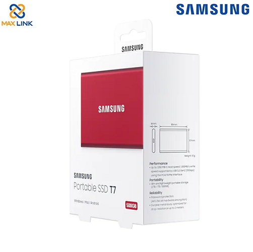 Ổ cứng SSD SAMSUNG T7 PORTABLE Red 500GB MU-PC500R/WW