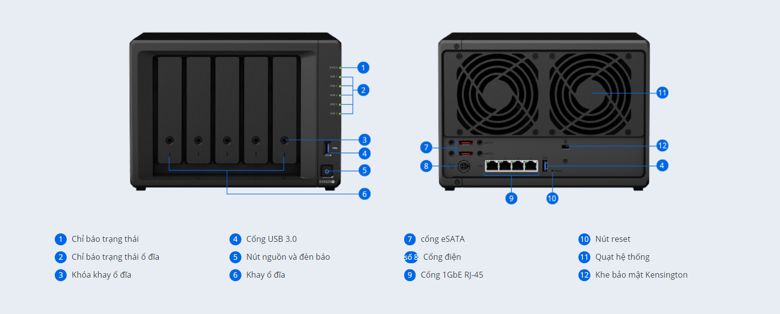 Khả năng mở rộng: Mở rộng lên đến 15 ổ đĩa với bộ mở rộng DX517