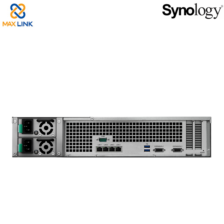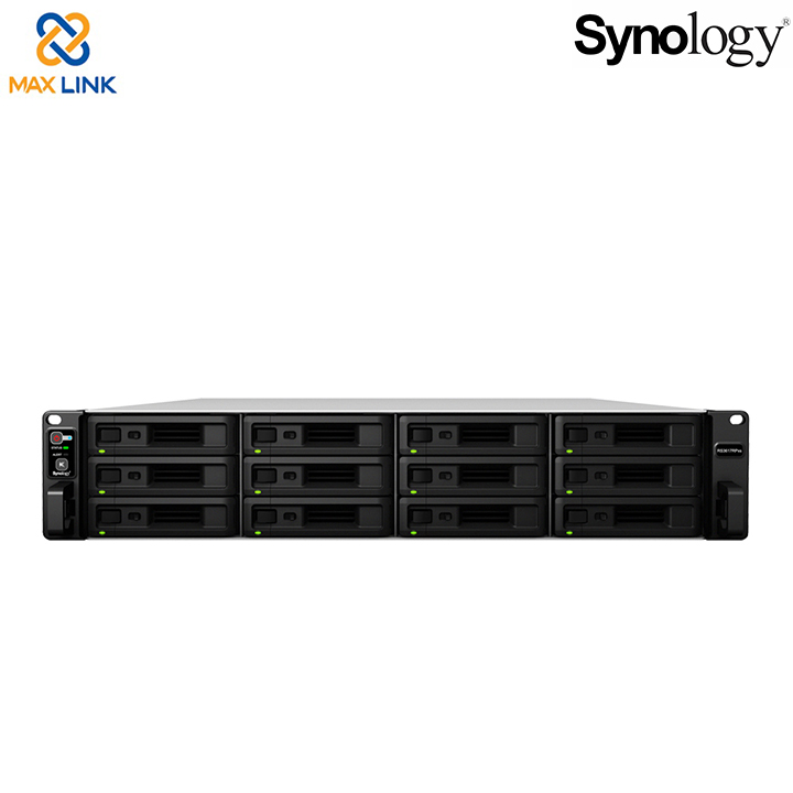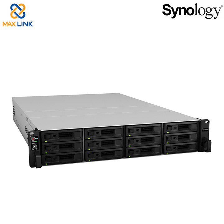 12-bay RackStation (up to 36-bay), Quad Core 2.4 GHz (turbo to 2.7GHz), 8GB RAM (up to 64GB), 10GbE NIC support (optional), Redundant power