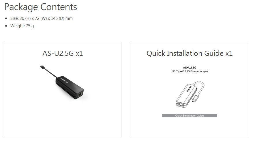 Mô tả: Bộ chuyển đổi AS-U2.5G, USB3.2 Gen 1 Type-C sang 2.5GBASE-T