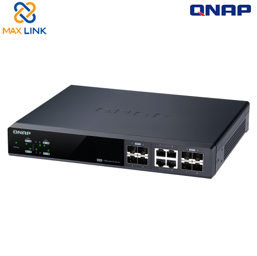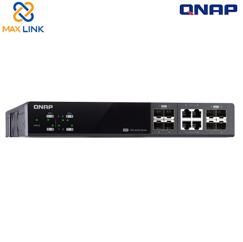 Bộ chuyển mạch 12 cổng QSW-M804-4C bao gồm bốn cổng SFP + (sợi quang) và tám cổng kết hợp SFP + / RJ45 (đồng) để kết nối các giao diện khác nhau. Với giao diện RJ45, 10GbE được hỗ trợ bằng cáp Cat 6a (hoặc cao hơn). Cáp Đồng (DAC) gắn trực tiếp có thể được sử dụng với cổng SFP + để kết nối với máy chủ bên trong giá đỡ. Khả năng chuyển mạch của QSW-M804-4C là 240 Gbps, đảm bảo toàn bộ tiềm năng của mỗi cổng. QSW-M804-4C cũng tương thích với công nghệ 10GbE và NBASE-T để hỗ trợ tối đa năm tốc độ (10G / 5G / 2,5G / 1G / 100M). Các cổng kết hợp SFP + / RJ45 (đồng) cung cấp tốc độ truyền cao hơn với các loại cáp hiện có. Tùy thuộc vào loại cáp và độ dài của chúng, có thể đạt được các tốc độ khác nhau để truyền dữ liệu nhanh hơn, hiệu quả hơn.