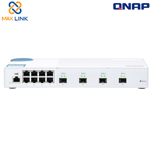 - QSW-M408S được trang bị bốn cổng 10GbE SFP + và tám cổng Gigabit để kết nối các thiết bị khác nhau.