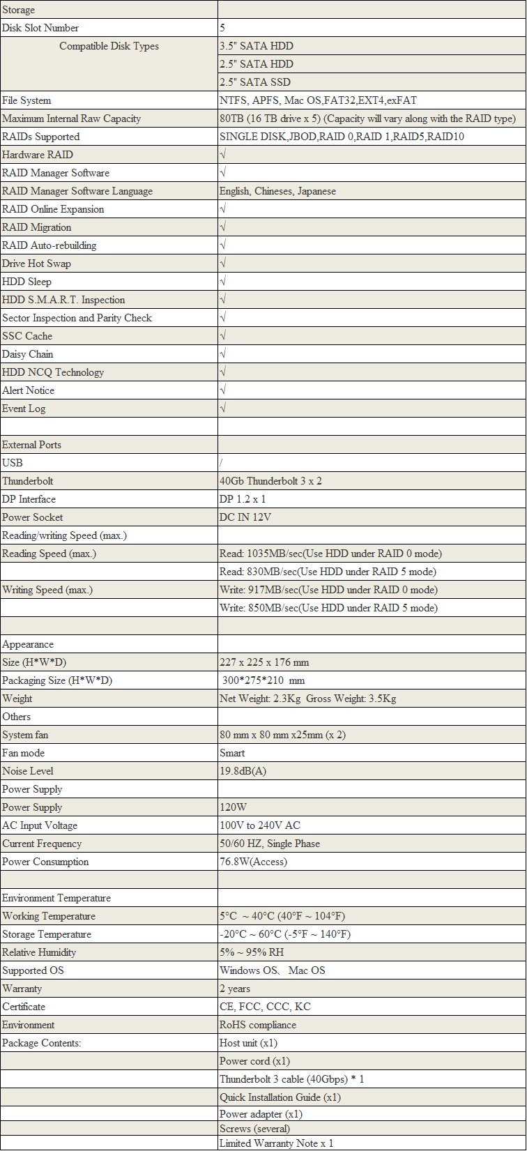 Cả Apple và Intel đều đã chứng nhận thiết kế và hiệu suất của Thiết bị lưu trữ DAS TERRAMASTER D5-Thunderbolt 3, đảm bảo hiệu suất và độ tin cậy nhất quán của thiết bị.