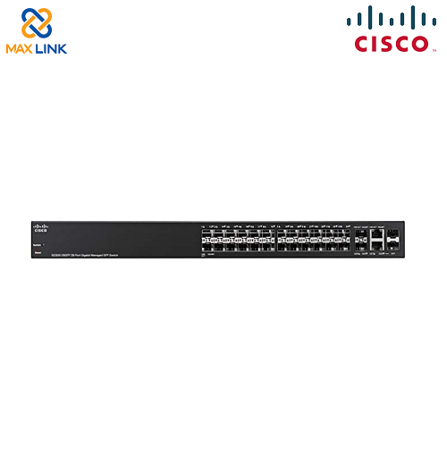 - Cisco SG300-28SFP 28-port Gigabit SFP Managed Switch có 26 cổng SFP Gigabit và 2 cổng combo mini-GBIC.