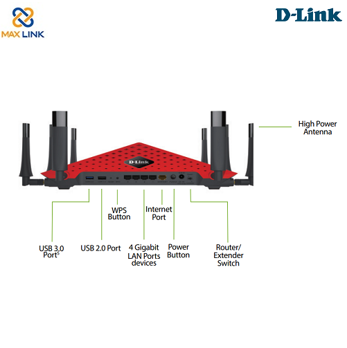 Ngoài ra, Thiết bị phát Wifi không dây dành cho giải trí đa phương tiện DIR-895L được trang bị 8 ăng ten bên ngoài cùng bộ khuếch đại công suất cao sẽ mang lại khả năng phủ rộng lên đến 500m2 cho không gian giải trí cũng như làm việc của bạn. Với độ lợi tín hiệu 5 dBi và khả năng tháo rời tiện lợi cũng như sự linh hoạt với chức năng xoay, bạn được định hướng sóng Wi Fi tốt hơn. Khả năng tháo rời cũng cho phép bạn thay thế bằng một ăng ten khác để đạt được vùng phủ sóng như mong muốn. Với việc thay được ăng ten, bạn có thể đưa ra lựa chọn mới phù hợp giúp tăng vùng phủ sóng và tốc độ thực sự làm tăng tính đa dụng của sản phẩm.