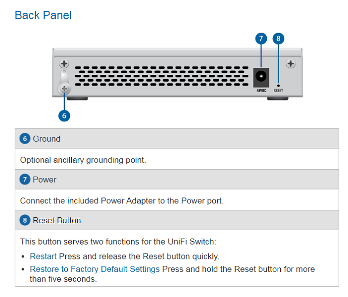 Thiết bị chuyển mạch UniFi Switch US-8-60W sử dụng nguồn từ bộ adapter đi kèm. Nó có 4 cổng PoE tự động cảm biến và cấp nguồn điện lên tới 15.4W